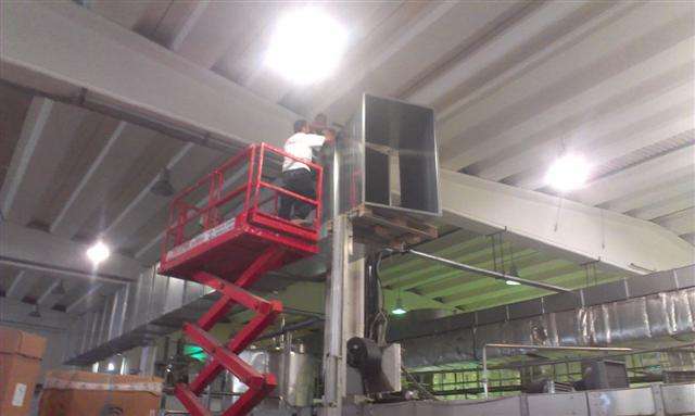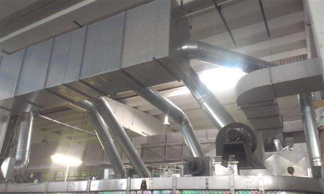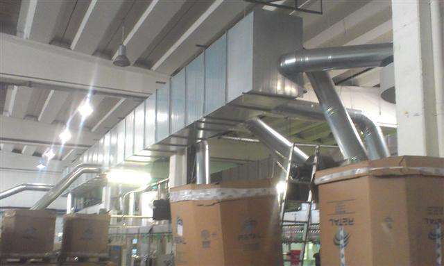 Επίσης αναλάβαμε την κατασκευή και εγκατάσταση δικτύου εισαγωγής νωπού αέρα στους ανεμιστήρες της γραμμής παραγωγής.
