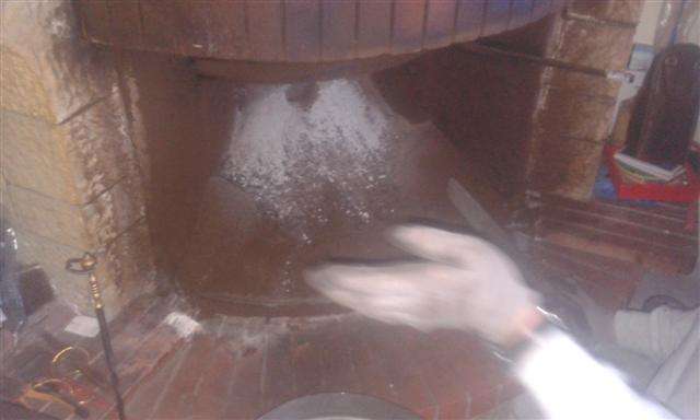 Παραθέτουμε παρακάτω τις φωτογραφίες με τα κατάλοιπα του καθαρισμού στην εστία και την φωλιά πουλιού στο καπέλο της καμινάδας: