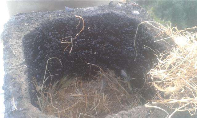 Και σε άλλη καμινάδα τζακιού, βρέθηκε εντός του περιστρεφόμενου καπέλου και στην καμινάδα μια φωλιά πουλιού, η οποία βεβαίως και απομακρύνθηκε. Παραθέτουμε και τα κατάλοιπα μετά τον καθαρισμό εντός της εστίας.