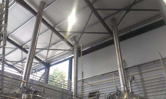 Στις νέες εγκαταστάσεις - επέκτασης της κρητικής ζυθοποιίας ΑΕ ‘Χάρμα’ μας ανατέθηκε η τοποθέτηση αεραγωγών από inoxελάσματα 316L για την απαγωγή των καυσαερίων στα κεντρικά καζάνια.