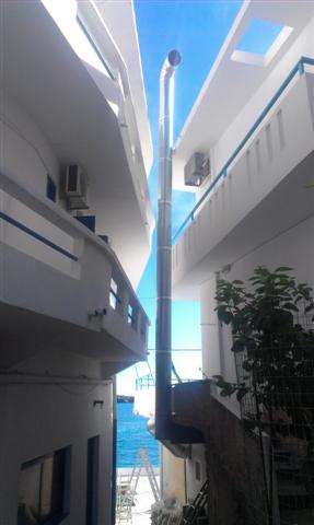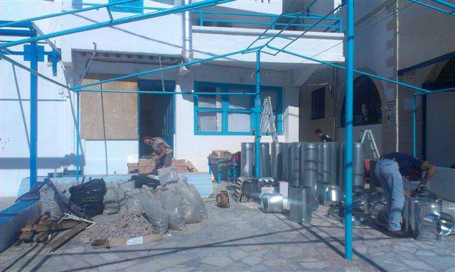 Αναλάβαμε την εγκατάσταση δικτύου απαγωγής καυσαερίων από την κεντρική χοάνη εστιατόριου στο Λουτρό Χανίων. Το δίκτυο κατασκευάστηκε από γαλβανιζέ στρογγυλής διατομής αεραγωγούς.