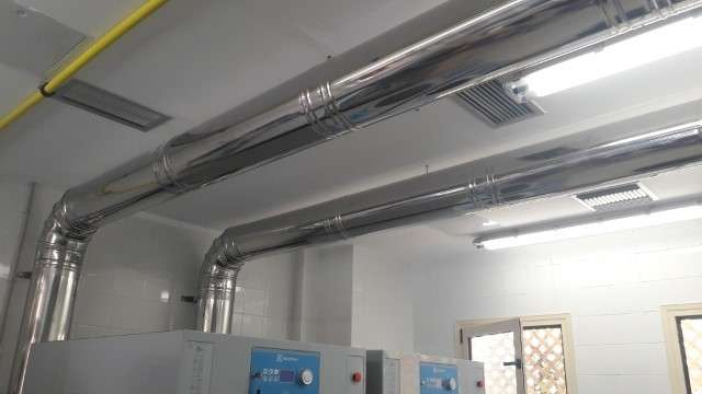 Κατασκευή και τοποθέτηση δικτύου inox304 διπλού μονωμένου αεραγωγού,  απαγωγής θερμού αέρα στα  πλυντήρια - στεγνωτήρια του Porto Venetsiano Hotel στο παλιό λιμάνι Χανίων